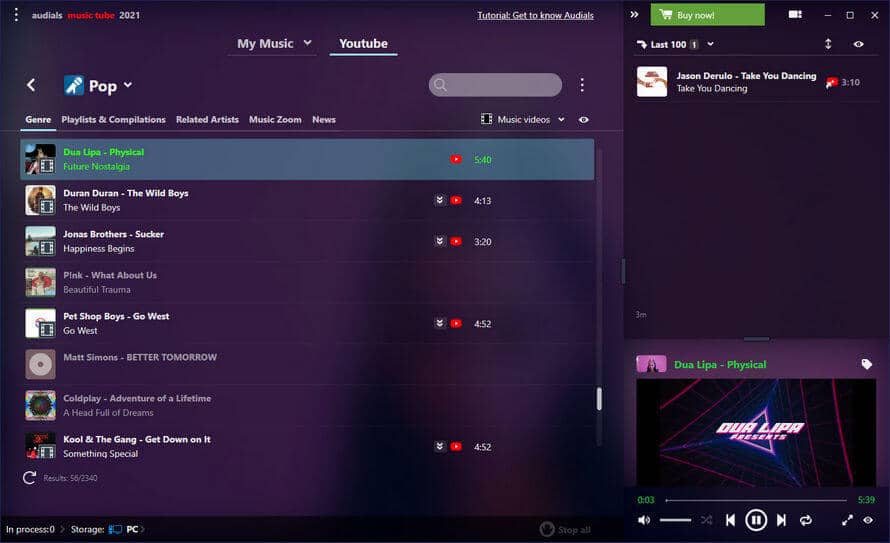 Windows software makes it possible to browse all music on YouTube, sorted by genres, artists and albums, and to connect with your own music collection.