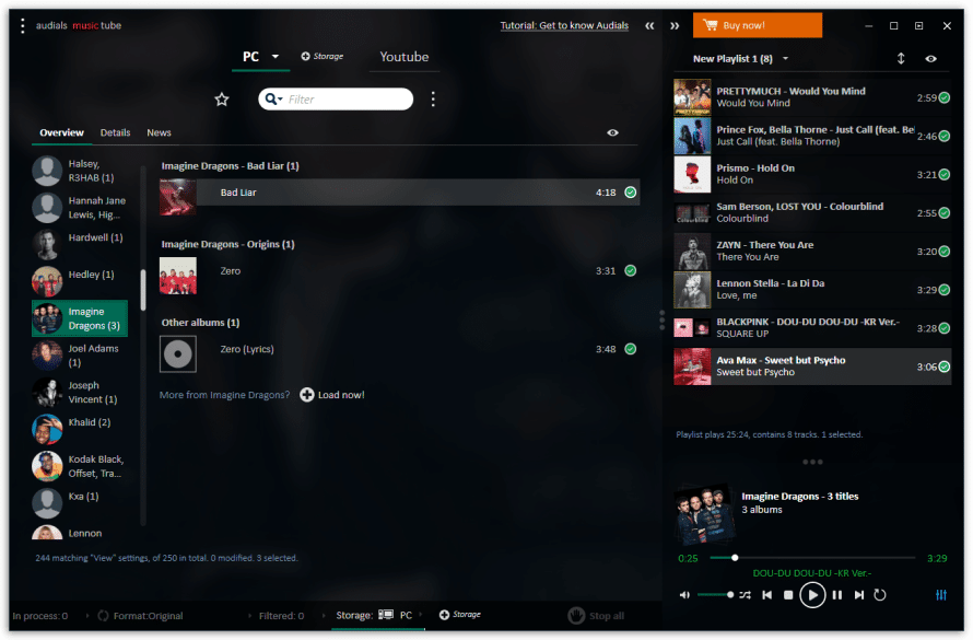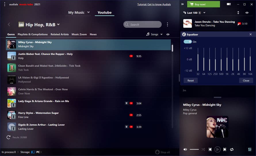 Audials Music Tube searches YouTube for the music of your stars. The hits are clearly grouped by music albums so that you can comfortably listen to the desired title or save it immediately as MP3. You can also “link” your favorite music to the playlist, so your collection can grow in thousands of songs as fast as never before!