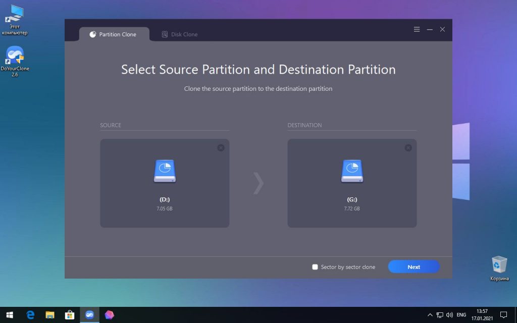DoYourClone offers two disk cloning modes: partition clone and disk clone. With partition clone, you can easily clone a hard drive partition to any other location. The disk clone mode will help you clone an entire disk drive. DoYourClone is 100% safe disk cloning software. It will not cause any damage to your hard drive.