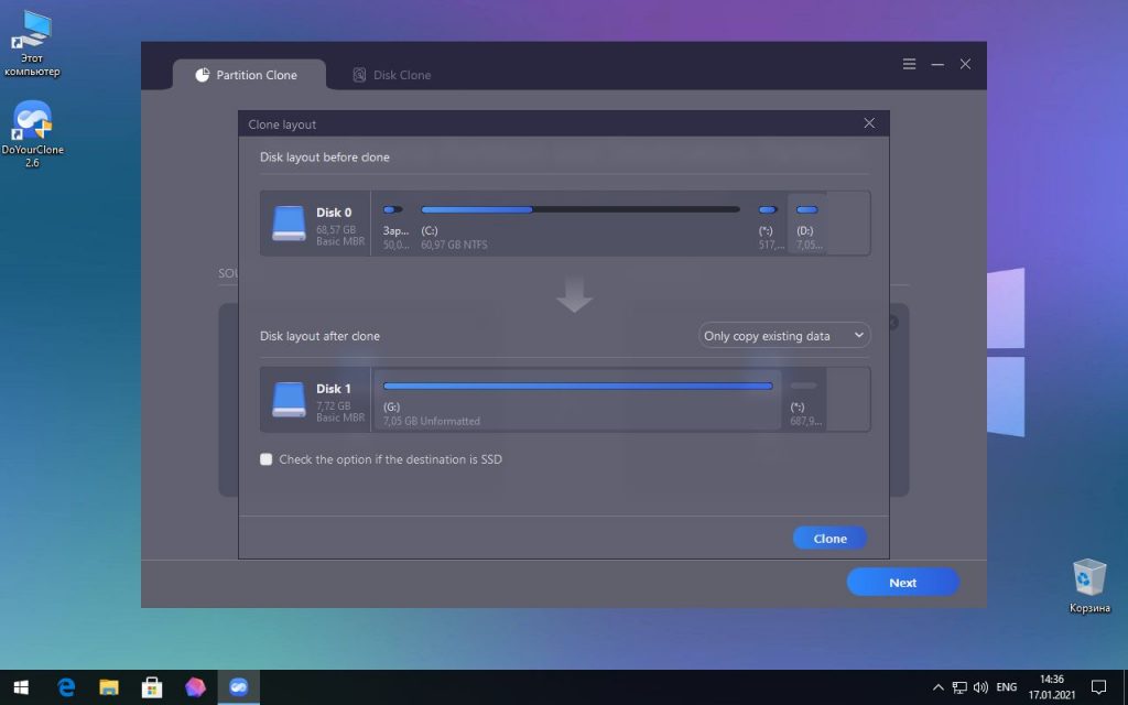 If you are going to clone a hard drive or make a full backup of your system drive, just download DoYourClone. It offers SSD disk clone, sector-by-sector disk clone and other disk clone solutions. Before cloning your hard drive, you also can edit the disk layout.